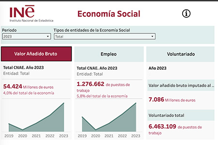 El INE publicó el pasado 26 de febrero, por vez primera, la Cuenta Satélite de la Economía Social en España. Dicha cuenta satélite refleja la actividad económica y laboral de la economía social en su conjunto y de cada una de sus familias: las cooperativas, sociedades laborales, mutualidades, empresas de inserción, centros especiales de empleo de iniciativa social, cofradías de pescadores, sociedades agrarias de transformación, fundaciones, las asociaciones que llevan a cabo actividad económica y las entidades singulares, todo ello siguiendo la Ley 5/2011, de 29 de marzo, de Economía Social.